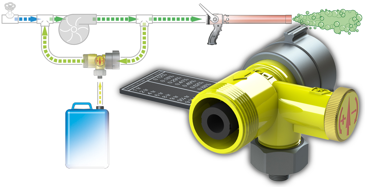 It is an ingenious mechanism in the way that the premixing takes place without loss of pressure, which makes it possible to supply a foam branchpipe at a long distance from the emulsifier container.