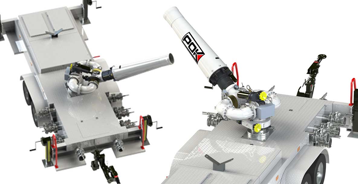 Comme chaque incendie est différent, la possibilité de placer stratégiquement des moyens lourds de lutte contre l’incendie est un atout non négligeable. Afin de répondre à cette problématique, la société POK®, a conçu une large gamme de remorques permettant d’accueillir différents types de monitors.