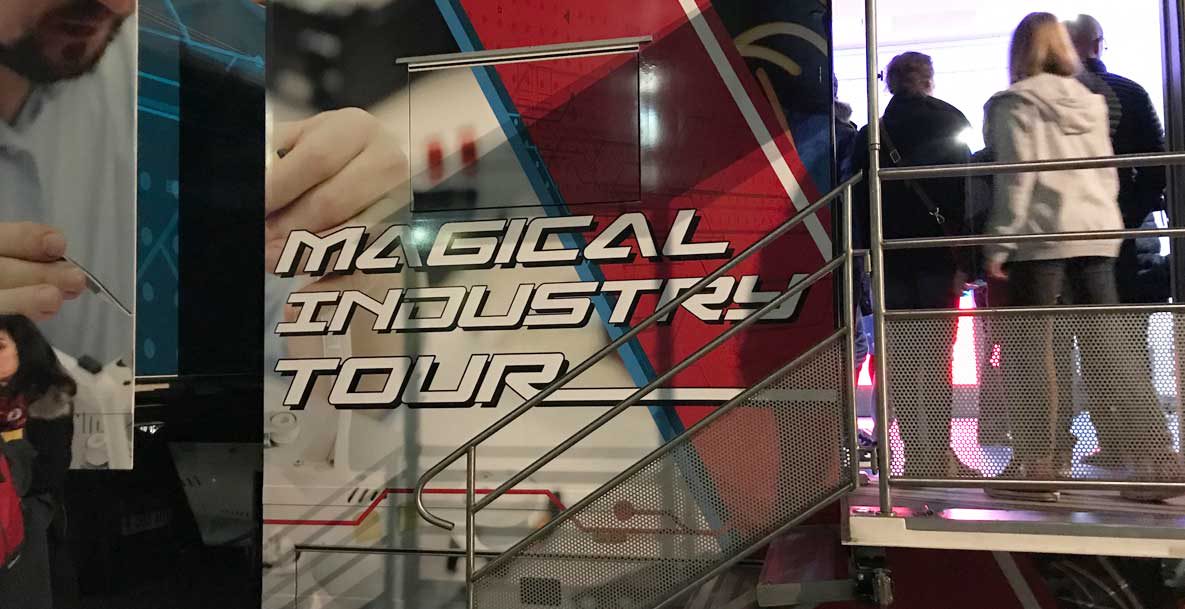 Nous avons également découvert le bus « Magical Industry Tour », qui présente des métiers techniques de pointe. Comme dans la chanson des Beatles auquel ce bus fait référence : en route pour le mystery tour, ils ont tout ce dont vous avez besoin, la visite mystérieuse et magique, attend pour vous emmener … vers un nouveau métier ! Il y a six îlots de découverte ! Il est possible d’apprendre à produire une pièce avec une imprimante 3D, à programmer un cobot ou à piloter une ligne de production (nous avons d’ailleurs des cobots à la mécanique). Un atelier permet d’apprendre à souder ou à faire des opérations de maintenance grâce à des équipements de réalité virtuelle, etc. Enfin, si l’on souhaite connaître ses aptitudes à l’une ou l’autre activité, il suffit de remplir la fiche d’aptitude pour chaque îlot et la faire valider.